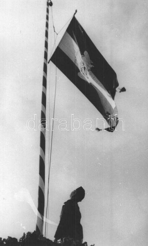 1940 Nagyszalonta, Salonta; Országzászló avatás, lobogó zászló / Hungarian Flag inauguration, flying flag. Zsák Jenő Jászberényi photo