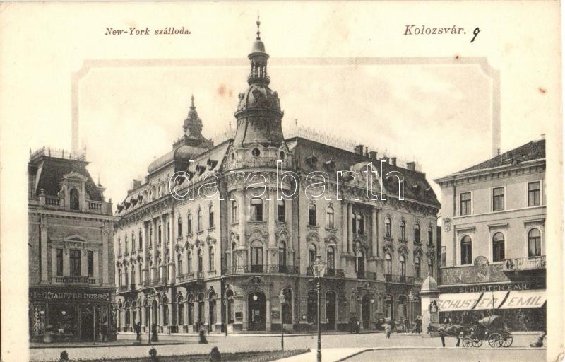 Kolozsvár, Cluj; New York szálloda, Schuster Emil és Tauffer Dezső üzl...