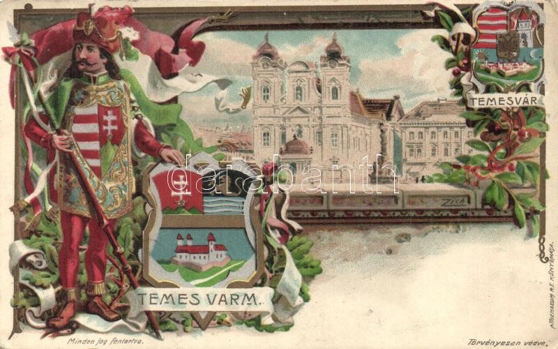Temesvár, Timisoara; Temes vármegye címere; Athenaeum Rt. kőnyomdája /...
