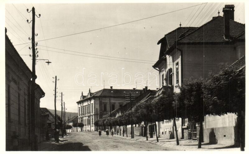Zsibó, Jibou; Kossuth utca, Járásbíróság / street view with court