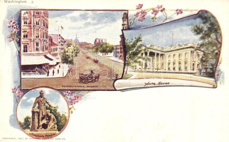 Washington, White House, Freedom's Memorial, Pennsylvania Avenue. American Souvenir Card Co. 3. Art Nouveau, floral