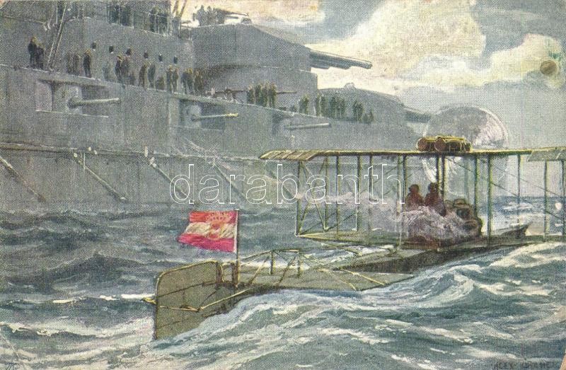 1917 Seeflugzeug beim Aufstieg. Rotes Kreuz, Kriegsfürsorgeamt Kriegshilfsbüro Nr. 557. / WWI K.u.k. Kriegsmarine seaplane s: Alex Kircher (EK)