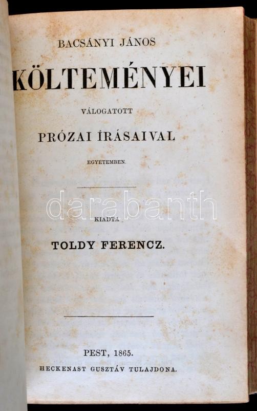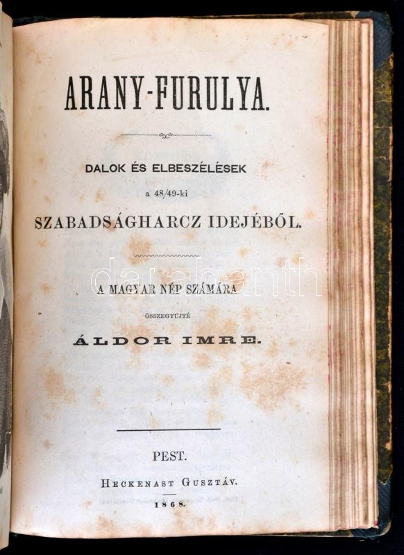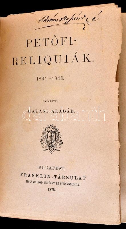 Kolligátum különböző művekből, részben 1848-1849-es témájú művekből: Szöllősy Ferenc: Kossuth és a magyar emigratió török földön. Lipcse, 1870, [Heckenast Gusztáv ny., Pest], XIV+239 p. Bacsányi János költeményei válogatott prózai írásaival. Kiadta Toldy Ferenc. Pest, 1865, Heckenast Gusztáv, VII+268 p. Petőfi-reliquiák 1841-1849. Gyűjtötte Halasi Aladár. Bp., 1878, Franklin, VIII+128 p. Arany-furulya. Dalok és elbeszélések a 48/49-iki szabadságharc idejéből. A magyar nép számára összegyűjté Áldor Imre. Pest, 1868, Heckenast Gusztáv, 1 t.+91 p. Átkötött kopottas modern félvászon-kötés, egy kijáró lappal.