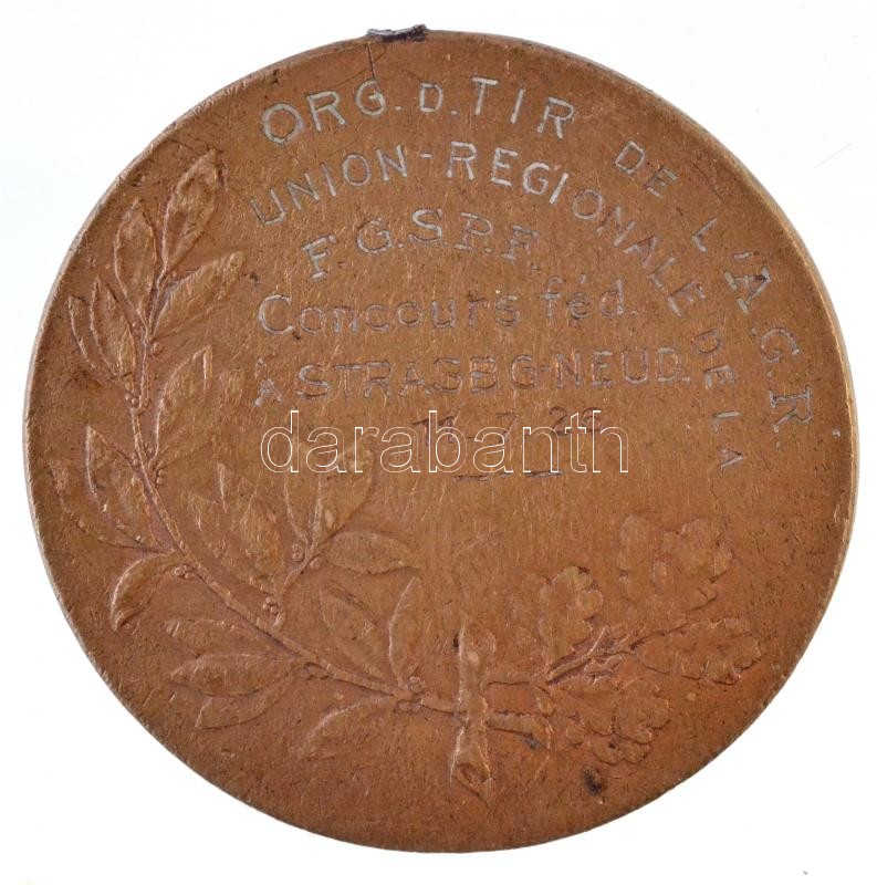 Franciaország 1926. "Pour Dieu et Patrie (Istenért és hazáért)" fém lövészeti sportérem (40mm) T:2- szennyeződés, fülnyom France 1926. "Pour Dieu et Patrie" metal shooting sport medal (40mm) C:VF stain, earmark
