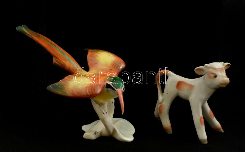 Aquincumi gyurgyalag, kézzel festett, jelzett, kis kopásokkal, m: 10 cm + Drasche boci, kézzel festett, jelzett, kis kopásokkal, m: 8 cm