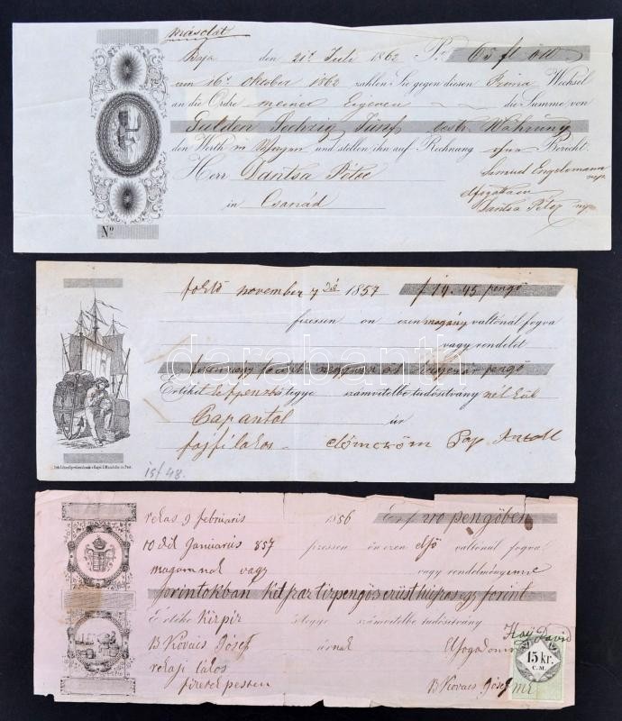 cca 1855 3 db hajó motívummal ellátott váltó