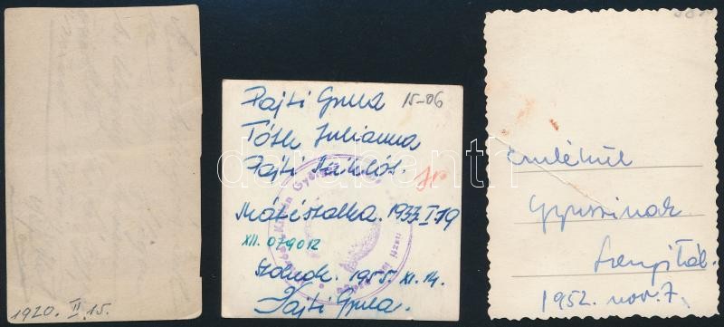 1920-1955 3 db pilótafotó, hátuljukon feliratozva, különböző méretben