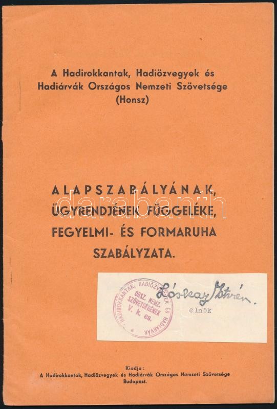 1935 Hadirokkantak, Hadiözvegyek és Hadiárvák Országos Nemzeti Szövets... https://www.darabanth.com/en/300-Online-auction/300.0/Other-collectibles/Military~25/1935-Hadirokkantak-Hadiozvegyek-es-Hadiarvak-Orszagos-Nemzeti-Szovetsege-HONSZ-alapszabal~II1608034