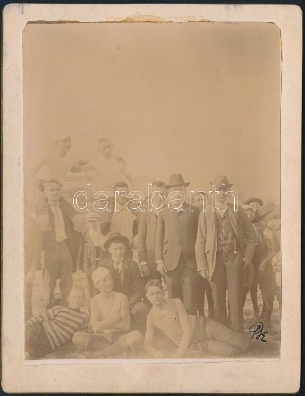 cca 1910 Férfiak a Duna-parton, keményhátú fotó, 8,5x11 cm