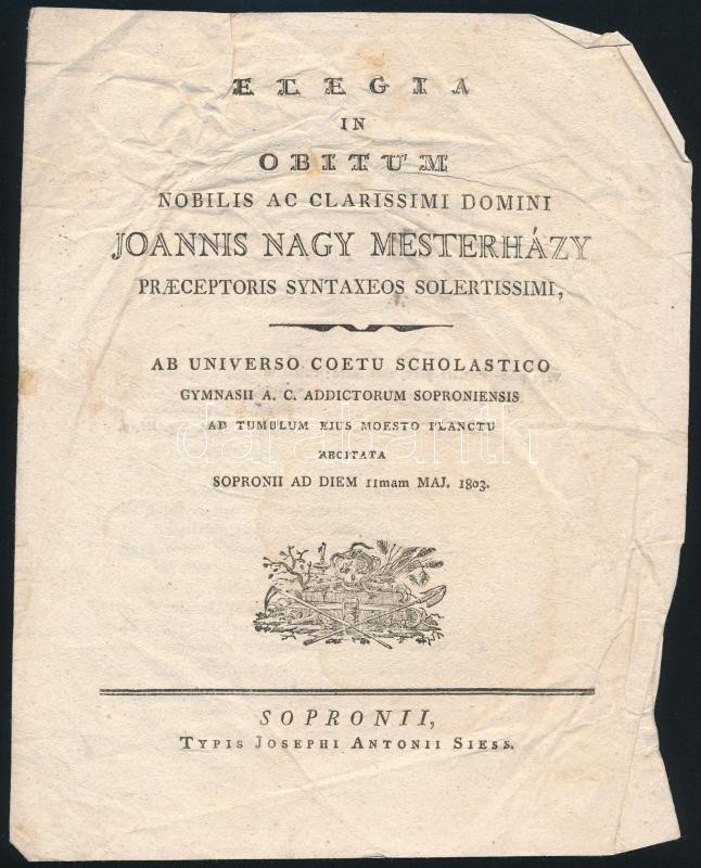 https://www.darabanth.com/en/300-Online-auction/300.0/Other-collectibles/Printed-Materials~27/1803-Mesterhazy-Nagy-Janos-halotti-elegiaja-4p-Kiadva-Sorponban-Siess-Antal-nyomdaja-GyurC5~II1607699