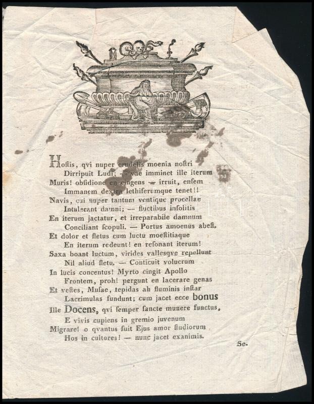 1803 Mesterházy Nagy János halotti elégiája. 4p. Kiadva Sorponban, Siess Antal nyomdája. Gyűrődésekkel