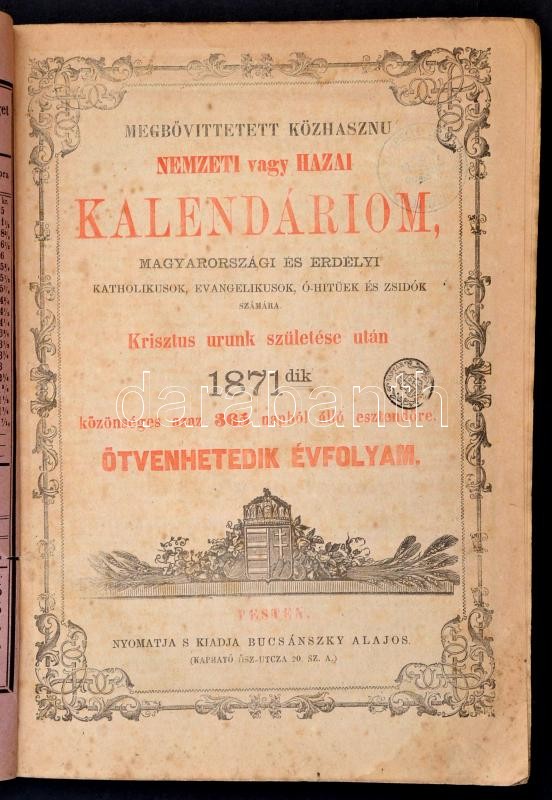 1871 Megbőnvittetett közhasznu Nemzeti Kalendárium, 1871 közönséges év... https://www.darabanth.com/en/300-Online-auction/300.0/Other-collectibles/Printed-Materials~27/1871-Megbonvittetett-kozhasznu-Nemzeti-Kalendarium-1871-kozonseges-evre-Otvenhetedik-evfo~II1579700