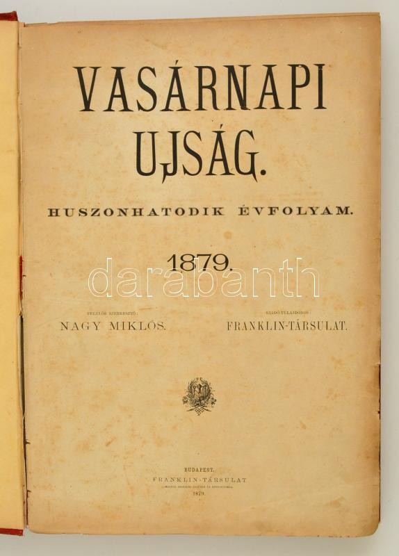 1879 Bp., Nagy Miklós(szerk.): A Vasárnapi Újság 26. évfolyama, kiadja... https://www.darabanth.com/en/300-Online-auction/300.0/Other-collectibles/Printed-Materials~27/1879-Bp-Nagy-Miklosszerk-A-Vasarnapi-Ujsag-26-evfolyama-kiadja-a-Franklin-Tarsulat-ki~II1610381