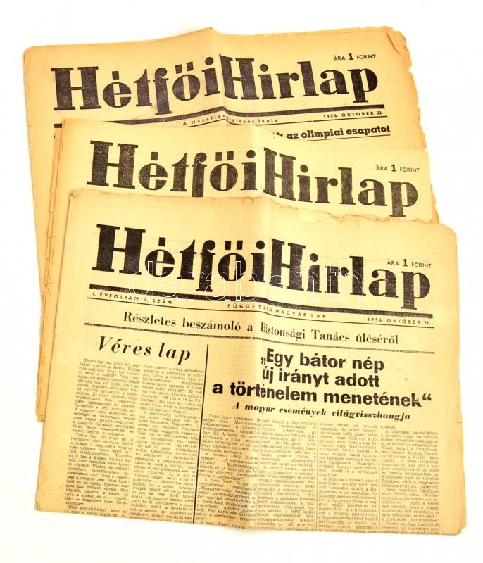 1956 Hétfői Hírlap, A Hazafias Népfront 3 száma a forradalom híreivel,...