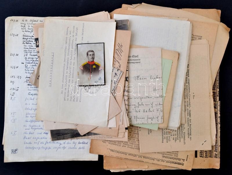 Description: cca 1900-1940 Vegyes papírrégiség tétel, német nyelven, részben a III. birodalom időszakából, okmányok, újságok, nyomtatott és kézzel írt papírok, változó állapotban.