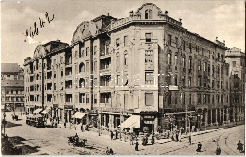 Budapest II. Margit körút 5. Szeiffert Antal kávéháza, Deutsch Ferenc üzlete, villamos (Rb)
