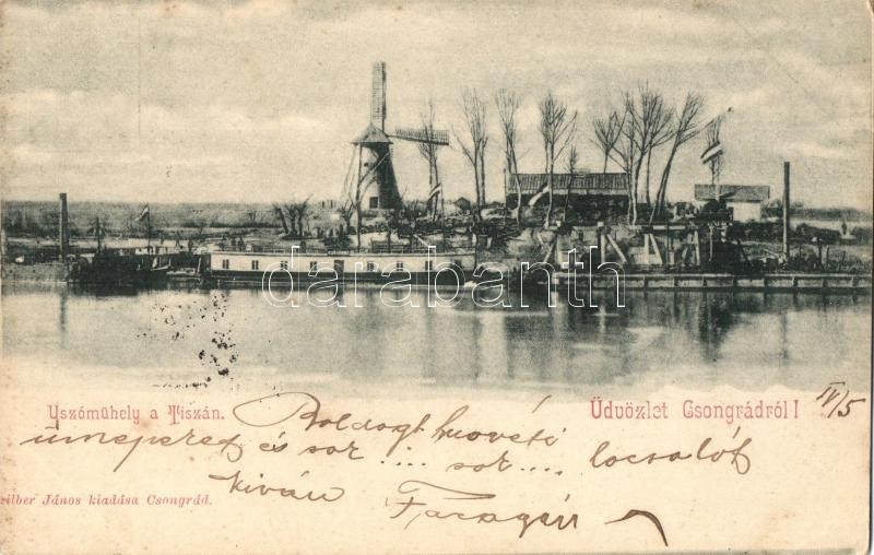 Csongrád, Úszóműhely a Tiszán. Szilber János kiadása (vágott / cut)