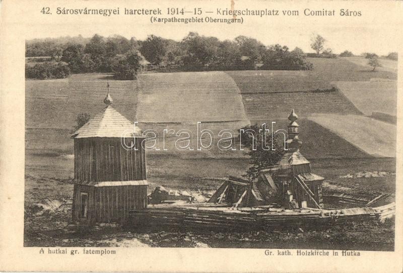 Hutás, Hutka; Görög katolikus fatemplom romok, 42. Sárosvármegyei harc... https://www.darabanth.com/en/300-Online-auction/300.0/Postcards/Slovakia~300008/Hutas-Hutka-Gorog-katolikus-fatemplom-romok-42-Sarosvarmegyei-harcterek-1914-15-Friedmann-~II1610695