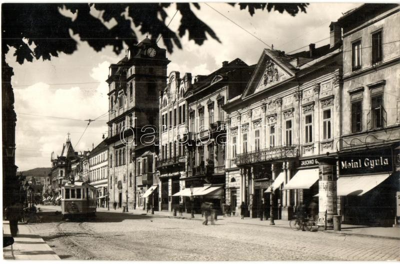 https://www.darabanth.com/en/300-Online-auction/300.0/Postcards/Slovakia~300008/Kassa-Kosice-Fo-utca-villamos-Jaschko-Meinl-Gyula-uzletei-main-street-tram-shops-Gyori~II1610164