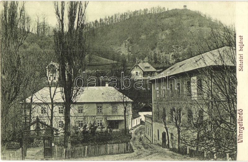 Vihnyefürdő, Kúpele Vyhnye; Sétatéri bejárat. Grohmann kiadása / promenade entrance, street view