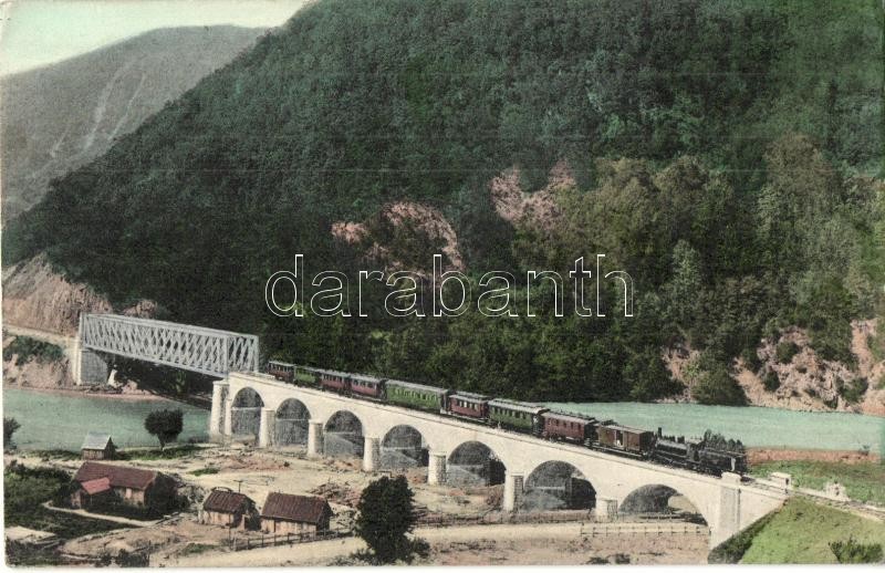 Vöröstoronyi-szoros, Roter-Turm-Pass, Pasul Turnu Rosu; Landesgrenze / Magyar-román országhatár, vasúti híd gőzmozdonnyal. Karl Graef kiadása / Hungarian-Romanian border, railway bridge with locomotive (EK)