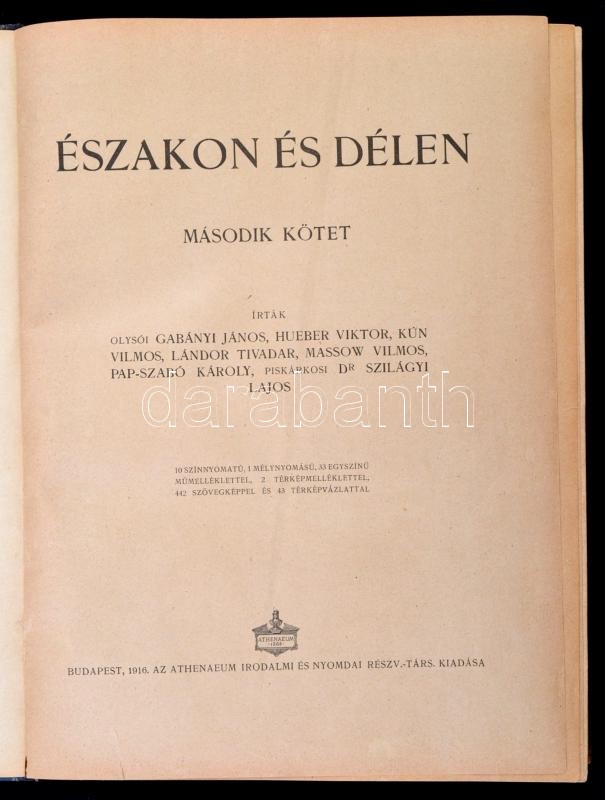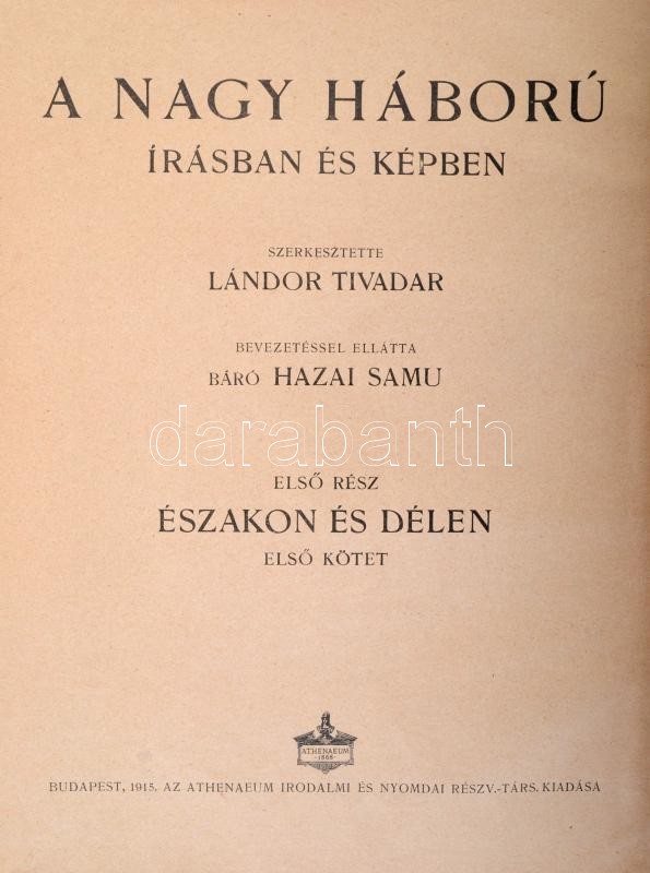 Description: A nagy háború írásban és képben. Szerk.: Lándor Tivadar. 1. rész: Északon és délen. 1-2. köt. Bp., 1915, Athenaeum. Kicsit kopott vászonkötésben, egyébként jó állapotban.