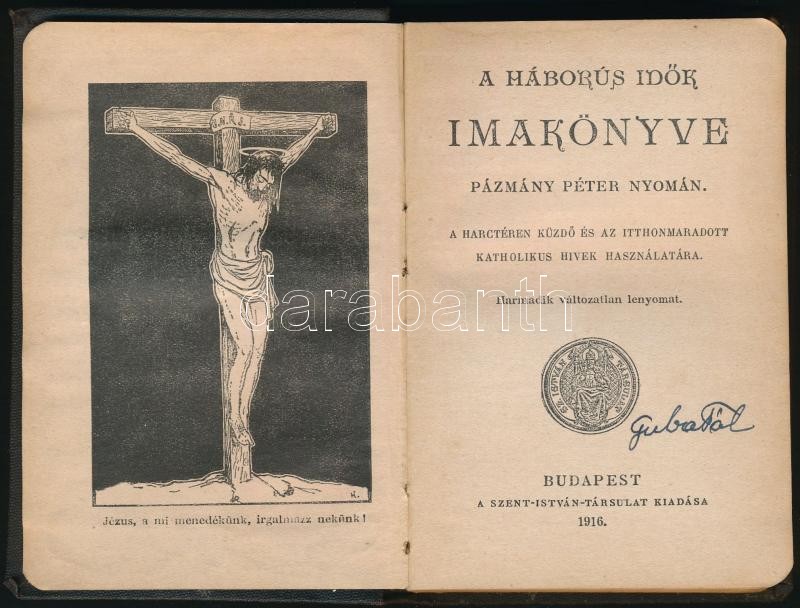 Háborús idők imakönyve. Bp., 1916, Szent István-Társulat. Egészvászon kötés, kissé kopottas állapotban.