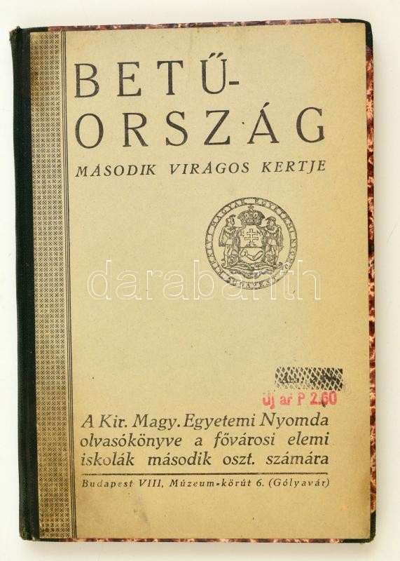 Betűország második virágos kertje. A Kir. M. Egyetemi Nyomda olvasókön... https://www.darabanth.com/en/301-Online-auction/301.0/Books/Books-Other-rarities~400016/Betuorszag-masodik-viragos-kertje-A-Kir-M-Egyetemi-Nyomda-olvasokonyve-a-fovarosi-elemi-i~II1615476
