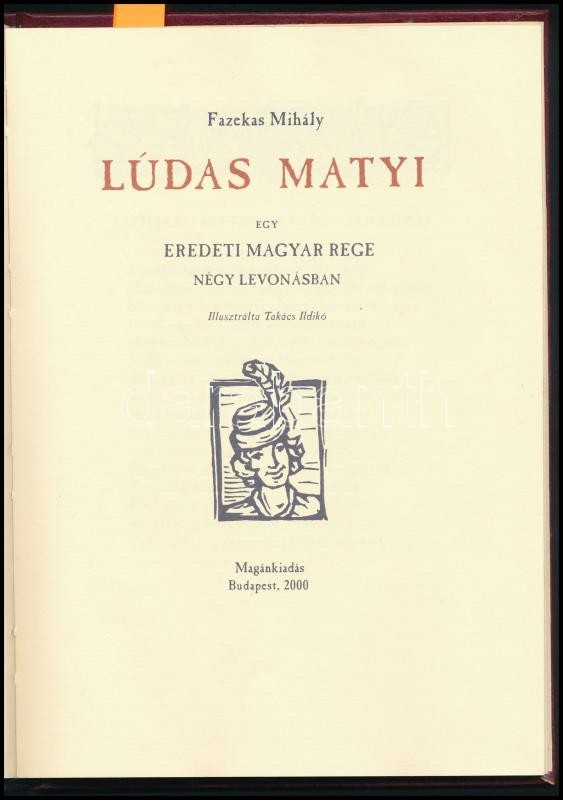 Fazekas Mihály: Lúdas Matyi egy eredeti magyar rege négy levonásban. I... https://www.darabanth.com/en/301-Online-auction/301.0/Books/Books-Other-rarities~400016/Fazekas-Mihaly-Ludas-Matyi-egy-eredeti-magyar-rege-negy-levonasban-Illusztralta-Takacs-Ildik~II1619335