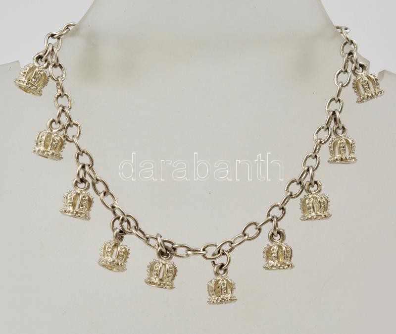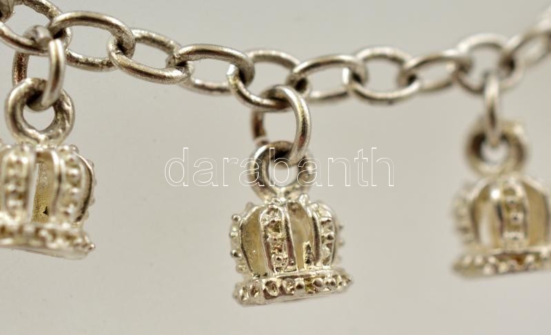 Ezüst(Ag) koronás karkötő, jelzett, h: 19 cm, nettó: 11 g