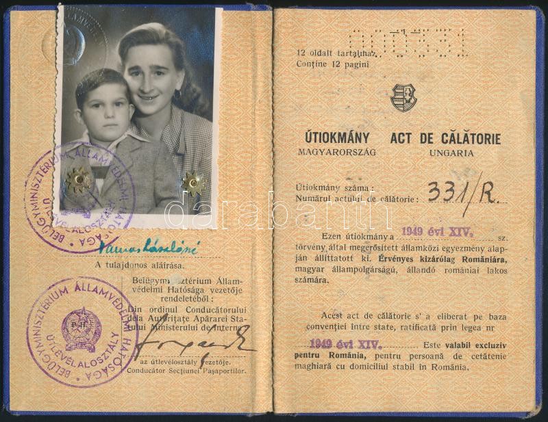 1950 Kolozsvár (Cluj), Fényképes úti okmány (útlevél) magyar állampolg... https://www.darabanth.com/en/301-Online-auction/301.0/Other-collectibles/Documents~17/1950-Kolozsvar-Cluj-Fenykepes-uti-okmany-utlevel-magyar-allampolgarsagu-allando-r~II1615771