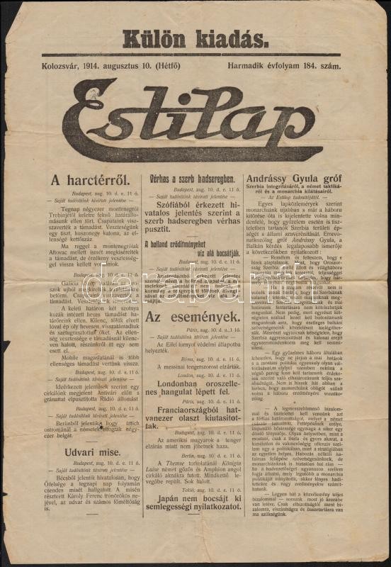 https://www.darabanth.com/en/301-Online-auction/301.0/Other-collectibles/Military~27/1914-a-kolozsvari-Esti-Pap-kulonkiadasa-aktualis-haborus-hirekkel-2-p~II1616238