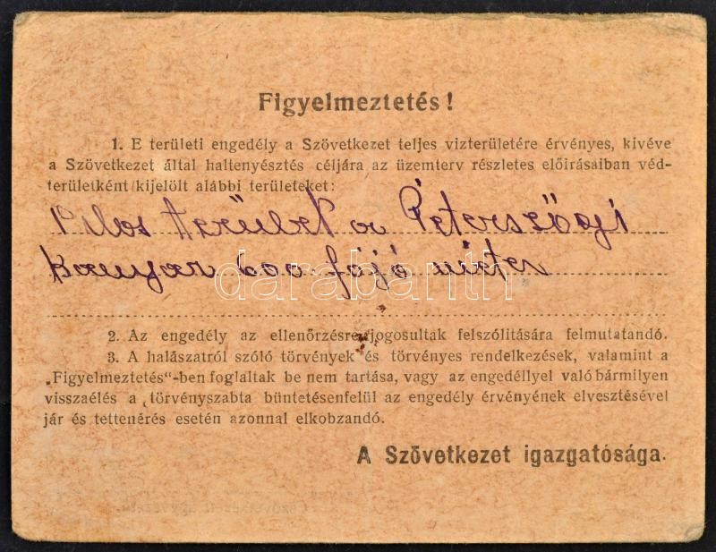 1948 Hármaskörösi Halászati Szövetkezet területi engedélye, Mezőtúr, kunszentmártoni lakos részére, pecséttel.