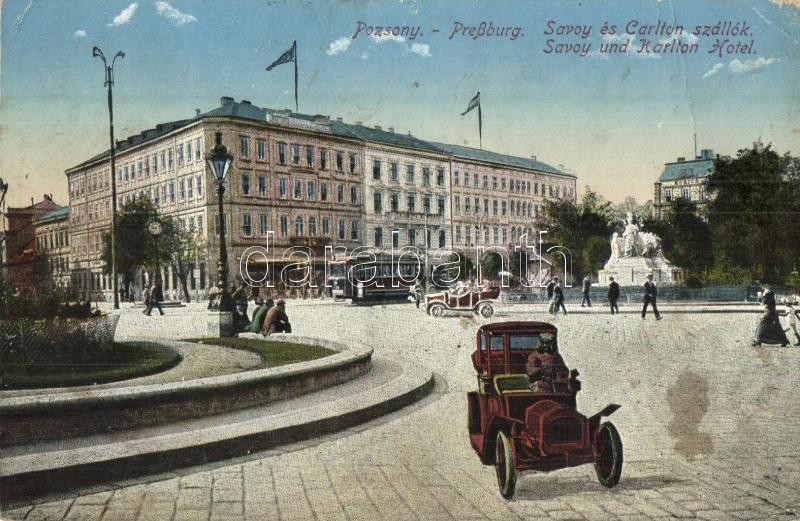 Pozsony, Pressburg, Bratislava; Savoy és Carlton szállodák, villamos, ...