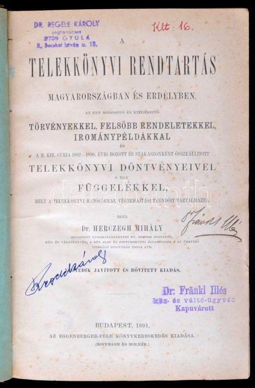 Herczegh Mihály: Telekkönyvi rendtartás Magyarországon és Erdélyben. Bp., 1891, Eggenberger. Kicsit kopott vászonkötésben, jó állapotban.