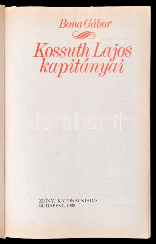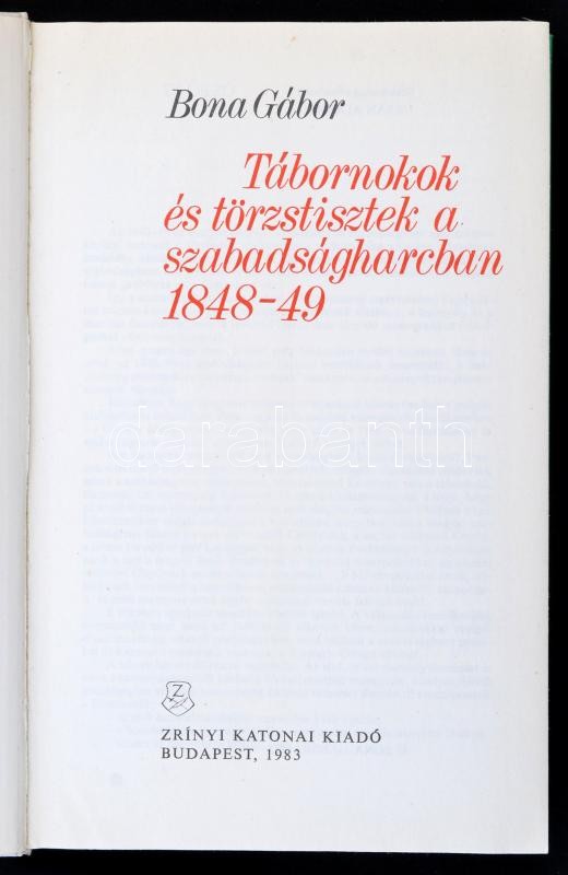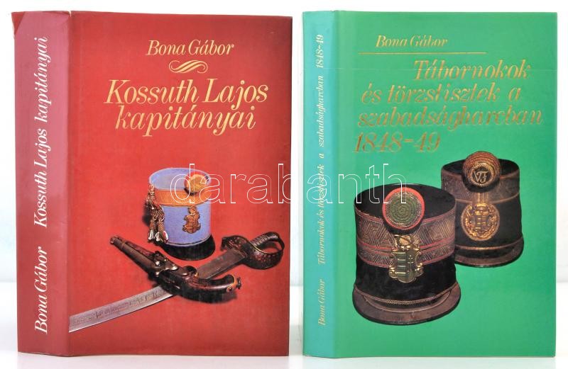 Bona Gábor könyvei, 2 db: Kossuth Lajos kapitányai. Bp., 1988, Zrínyi Katonai Kiadó. Kiadói egészvászon kötés, papír védőborítóval, jó állapotban. Tábornokok és törzstisztek a szabadságharcban 1848-49. Budapest, 1983, Zrínyi Katonai kiadó. Kiadói egészvászon kötés, kiadói papír védőborítóval, jó állapotban.