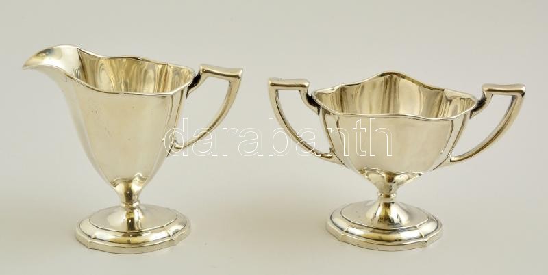 Ezüst (Ag.) tejszín kiöntő és cukortartó, jelzett, súlyozott, bruttó:197 g (2 db), m:10 és 8,5 cm
