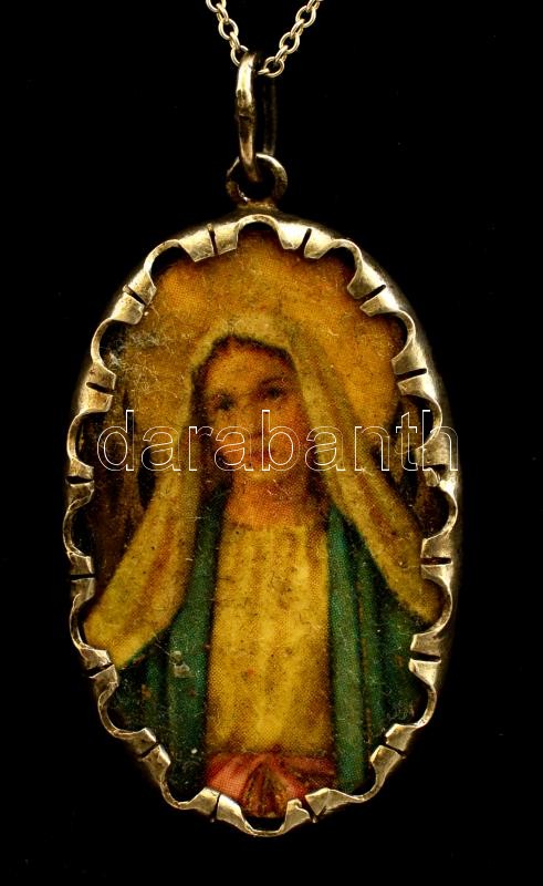 Ezüst(Ag) lánc, Szűz Mária medállal, jelzett, h: 38 cm, 5,4 g