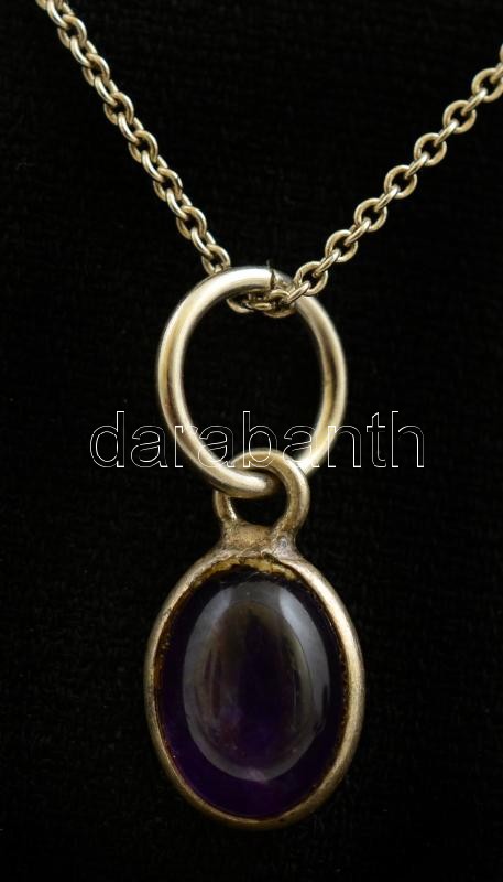 Ezüst(Ag) lánc, ametiszt függővel, jelzett, h: 38 cm, 1,5 g