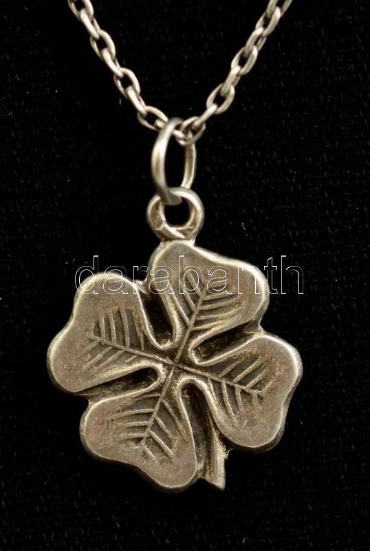Ezüst(Ag) nyaklánc, apró négylevelű lóhere függővel, jelzett, h: 42 cm...