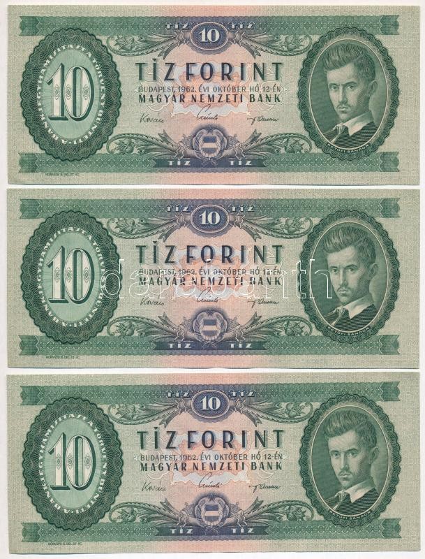 1962. 10Ft (3x) sorszámkövetők T:II,II-
