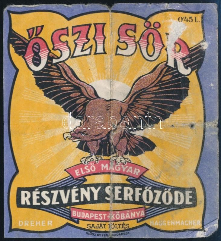cca 1930 Őszi sör italcímke, kissé megviselt állapotban