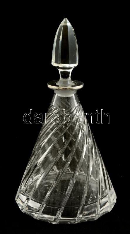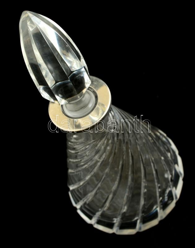 Dekoratív ezüst (Ag.) nyakú likőrős üveg dugóval, jelzett, hibátlan, m:28 cm