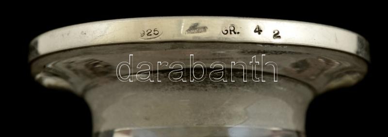 Dekoratív ezüst (Ag.) nyakú likőrős üveg dugóval, jelzett, hibátlan, m...