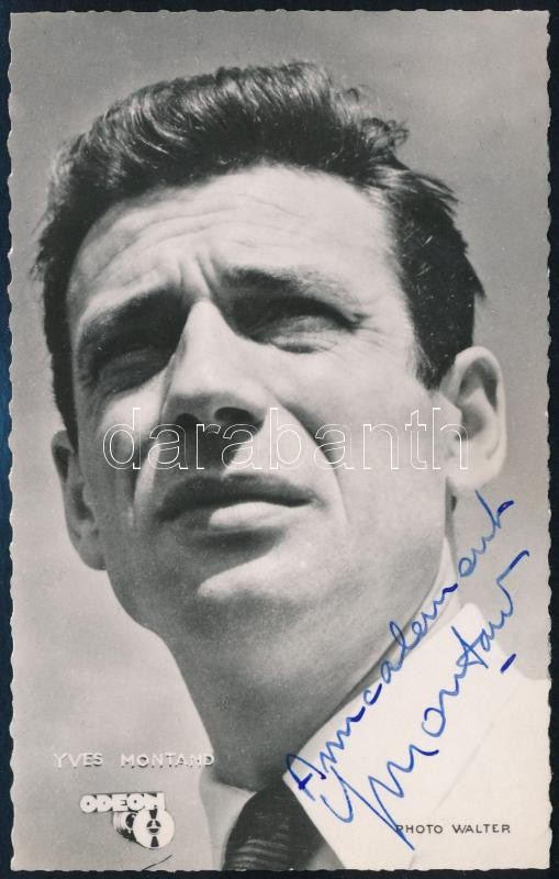 Yves Montand (1921-1991) francia sanzonénekes és színész dedikált fotó... https://www.darabanth.com/en/302-Online-auction/302.0/Other-collectibles/Autographs~19/Yves-Montand-1921-1991-francia-sanzonenekes-es-szinesz-dedikalt-fotolapja-14x9-cm-Autogra~II1621759