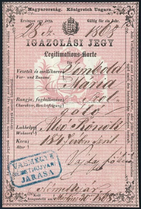 1868 Igazolási jegy alsórönöki szolgáló részére