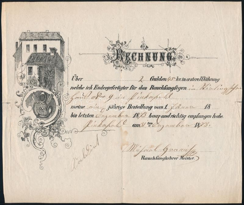1873 Pinkafő díszes kéményseprő számla / Chimneysweep invoice Pinkafeld