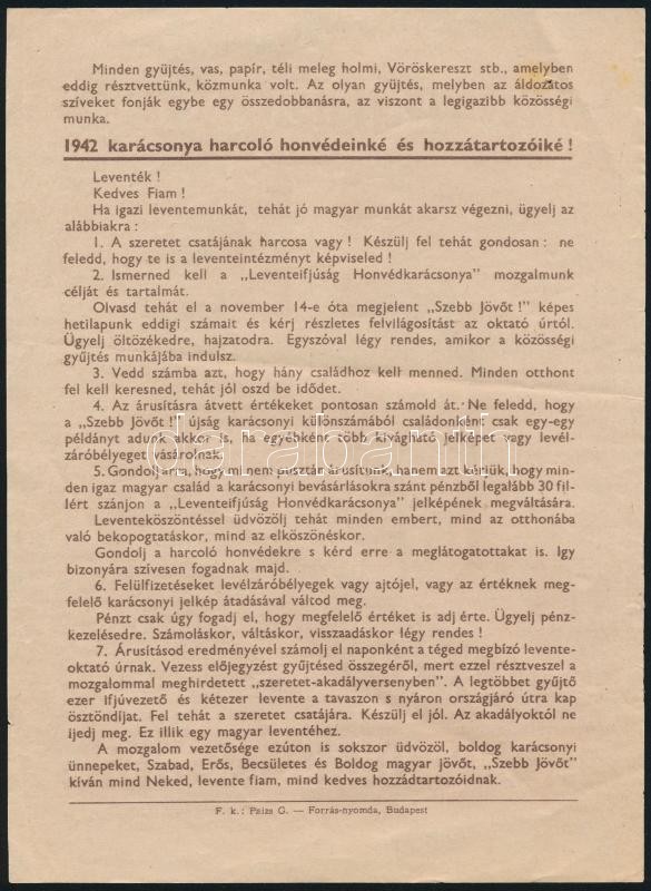 1942 Honvédkarácsony, Leventeifjúság Röplap