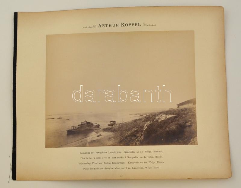 Description: cca 1890 Kamisin, hajókikötő, kötélpálya, Arthur Koppel, kartonra kasírozva, feliratozva, 20x26 cm / Kamyschin, Ropehaulage Plant and floating landingstage