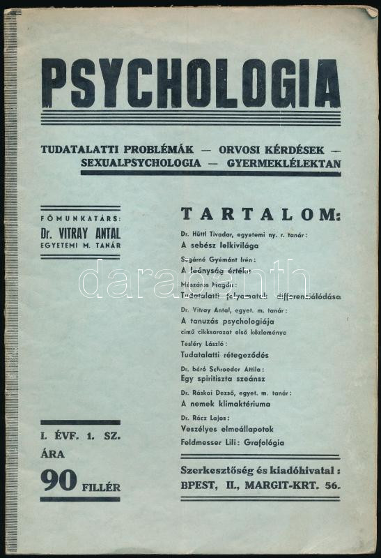 Psychologia. I. évfolyam 1. szám. Szerk: Schroeder Attila. Főmunkatárs... https://www.darabanth.com/en/302-Online-auction/302.0/Other-collectibles/Printed-Materials~28/Psychologia-I-evfolyam-1-szam-Szerk-Schroeder-Attila-Fomunkatarsakj-Teslery-Laszlo-es~II1479619